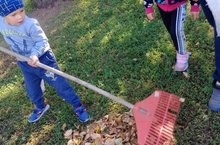 Бүген балаларыбыз апалары белән коелган яфракларны җыеп, участокларын чистарттылар. -