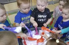 В МБДОУ "Миляшкай" дети первой мл.группы знакомятся со свойствами снега, экспериментируют.