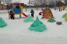 Коллектив детского сада «Миляшкай» слепили снежные фигуры Деда Мороза, Снегурочки и сказочные герои.