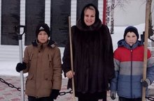 Бүген 6 нчы класс укучылары класс җитәкчеләре Гараева А.Ф. җитәкчелегендә обелискны кардан чистартып кайттылар/ Трудовой десант 6 класса. Ученики очистили обелиск от снега.