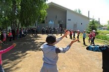 "Салават күпере" мәктәп яны лагере көндәлегеннән. Лагерьга йөрүче укучылар Иске Карамалы мәдәният йорты каршында оештырылган бию марафонында катнаштылар.