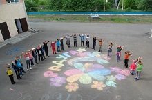 Лагерьга йөрүче укучылар салават күпере төсләре белән асфальтта лагерь эмблемасын ясадылар.