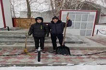 Учащиеся 6 класса вместе с классным руководителем Маликовым И.И. очистили обелиск со снега.