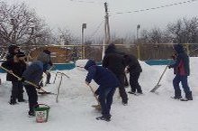 Под руководством учителей физкультуры Ханнанова Ф.Г., Гайрова И.З. учащиеся начали заливать хоккейную коробку (каток).