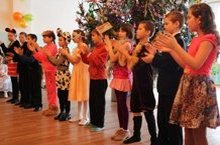 Сегодня состоялся новогодний праздник учащихся 1-6 классов. Учащиеся показывали подготовленные концертные номера, посмотрели на новогоднее представление, водили хоровод вокруг елки, пели новогодние песни, рассказывали стихи Деду Морозу и Снегурочке, выставили новогодние стенгазеты, украсили зал нарисованными рисунками на новогоднюю тему. Отличники были награждены грамотами и подарками. Каждому ученику, кто участвовал в новогодних мероприятиях, выручили сувениры, сладости.