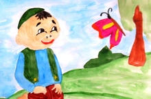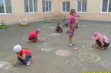 Балалар мәктәп янындагы асфальтны төрле төсләргә быядылар. 09.06.2014