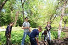 Мәктәп территориясен җыештыру, мәктәп яны тәҗрибә участогында эш. 21.04.2012