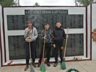 “Көзге игелек атнасы”, «#НеТолько9Мая» акциясе кысаларында укучылар Октябрь авылы җирлегендә урнашкан һәйкәлнең тирә-юнен тәртипкә китерделәр/В рамках акции” Осенняя неделя добра«,» #НеТолько9Мая " школьники привели в порядок территорию памятника, расположенного в Октябрьском сельском поселении.