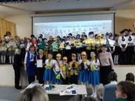 ЮИД отряды юл-транспорт һәлакәтләрен профилактикалау буенча "Кызыл, сары, яшел" агитбригадаларның район смотр-конкурсында "Юл йөрү кагыйдәләрен төгәл белүчеләр" номинациясендә җиңүче булды. (җит. Вәлиева Г. А., Гәрәева Р.Н.)/Отряд ЮИД стал победителем в номинации "Знатоки ПДД" районного смотра-конкурса агитбригад "Красный, желтый, зеленый" по профилактике ДДТТ. (рук. Валиева Г.А., Гараева Р.Н.)