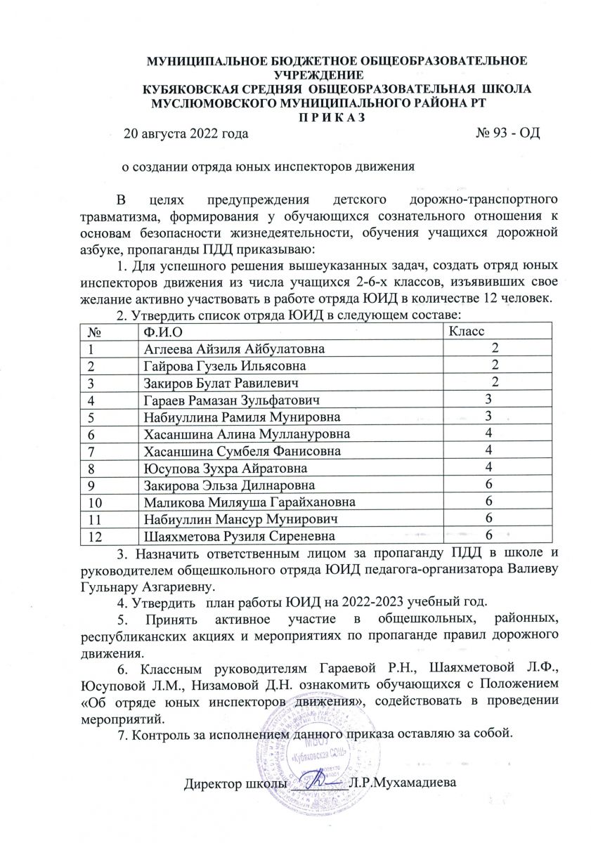 МБОУ «Кубяковская средняя общеобразовательная школа» Муслюмовского муниципального района РТ