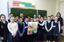 В рамках недели психологии педагог -психолог Сафина Л. Я для учащихся 4в класса провела классный час на тему: "Ладошки добрых дел", с целью которого было развить потребность делать добро, воспитывать добродушное отношение к окружающим людям, развивать коммуникативные качества. В конце классного часа учащиеся обвели свою ладошку и написали добрые дела, которые они сделали. Все собранные ладошки вырезали и собрали единый красочный плакат. Этот яркий плакат детского творчества с добрыми делами были вывешен на доске.