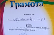 26 марта учащиеся лицея участвовали в районной спартакиаде по шахматам, где в заняли общекомандное 2 место среди команд начальных классов и команд средних ООШ Муслюмовского района. Ученики 11 класса Фатхутдинова Алина и Шаймарданов Айнур, ученица 3б класса Фатхуллина Лиана, ученик 4в класса Агзамов Адель заняли призовые места в личных зачётах. Поздравляем!