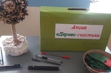 В рамках Акции «Почта радости» члены ученического самоуправления сделали инсталляцию «Дерево счастья», на которой разместили записки с пожеланиями для своих одноклассников и педагогов. Записки с пожеланиями были доставлены адресатам.