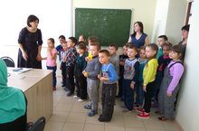 МБОУ Муслюмовский лицей посетили её будущие первоклассники – ребята из детского сада «Карлыгач». Увлекательная экскурсия позволила нашим выпускникам почувствовать себя первоклассниками. Ребята с удовольствием побывали в столовой, спортивном зале и библиотеке, в кабинетах по изучению отдельных предметов: физики, химии, татарского языка, а также посетили уроки учеников начальных классов, где они показали свои знания и разгадывали загадки. Время пролетело быстро, радостные и счастливые от приятных впечатлений и тёплого приёма они вернулись в свой детский сад.
