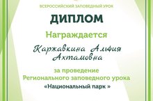 22 февраля в рамках проведения в 2017 году в Российской Федерации Года особо охраняемых природных территорий учащиеся 1а класса (учитель Каржавкина А.А.) стали участниками проекта «Всероссийский заповедный урок». Они посмотрели видео о Национальном парке «Нижняя Кама». Он создан в 1991 году недалеко от старинного города Елабуга. На территории Национального парка охраняются лесные насаждения, луговые травы, разные виды животных. Несмотря на охрану, всё равно наблюдается снижение численности зайца-беляка, зайца-русака, лис, кабанов, лосей, куниц. Также ребята выполняли творческие задания: отгадывали загадки, решали кроссворд.