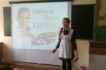 "Тукай дәресләре" 21.04.2016 20 апрельдә татар теле һәм әдәбияты атналыгы кысаларында 10-11 сыйныф укучылары өчен Габдулла Тукайның 130 еллыгына багышланган “Тукай дәресе” узды. Укучылар шагыйрь иҗатына күзәтү ясадылар, шигырьләрен укыдылар “Тукай мәхәббәтенең биш мизгеле” исемле фильм карадылар. Әлеге чараны Латыйпова А.Г. әзерләде һәм уздырды. Шул ук көнне 7а һәм 7б сыйныфы укучылары “Тукай иҗатын беләсеңме?” исемле уенында көч сынаштылар. “Тукай оныклары” һәм “Мөслимлеләр” командылары Тукайның тормыш юлы, иҗаты буенча сорауларга җавап бирделәр, шигырьләрен сөйләделәр. 7б сыйныф укучыларының “Тукай оныклары” командысы җиңү яулады. Чараны Ситдыйкова Ч.И. һәм Латыйпова А.Г. уздырды. Республикакүләм уза торган “Тукай дәресләре” кысаларында Латыйпова А.Г. 5а сыйныф укучылары өчен “Г.Тукайның тормыш мизгелләре” исемле дәрес уздырды. Укучылар проект эшләрен якладылар, компьютер презентациясе һәм Тукай иҗаты буенча төшерелгән мультфильмнар карадылар.