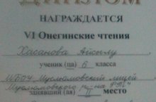 2 место в республиканской конференции "VI Онегинские чтения"... 18.02.2016