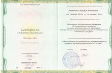 Повышение квалификации 16.10.2015 В рамках повышения квалификации учителей начальных классов Муслюмовского муниципального района, учителя лицея Иванова С.А., Каржавкина А.А., Муратова Р.М., Хабибуллина Э.Р., Шигапова Р.З. получили удостоверения по дополнительной профессиональной программе "Обеспечение результативности образовательного процесса в условиях реализации ФГОС НОО"