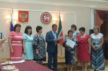 Тырыш хезмәт җимешләре 18.06.2015 Татар теле һәм әдәбияты буенча республика олимпиадасы призёрлары 10 cыйныф укучысы Минһаҗева Ләйсән һәм 9 cыйныф укучысы Миннебаева Гөлназ укытучылары Латыйпова А.Г һәм Ситдыйкова Ч.И. белән 16 июньдэ «Мизгел» яшьләр үзгендә узган Республика олимпиадасы җиңүчеләрен һәм призёрларын бүләкләү тантанасында булдылар. Район башлыгы Рамил Хәмзович укучыларны ирешкән уңышлары белән котлады, Рәхмәт хаты һәм кыйммәтле пакет тапшырды. Олимпиада призёрлары әзерләгән мөгаллимнәребез дә район башлыгының Рәхмәт хаты белән бүләкләнде.