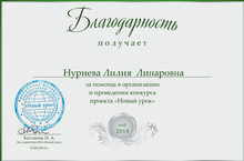 Заляева Регина (8б класс ) удостоилась Диплома 2 степени, Исламова Альбина (6а класс) Диплома 3 степени Международного дистанционного конкурса по английскому языку проекта "Новый урок". Учитель Нуриева Л.Л. Поздравляем!