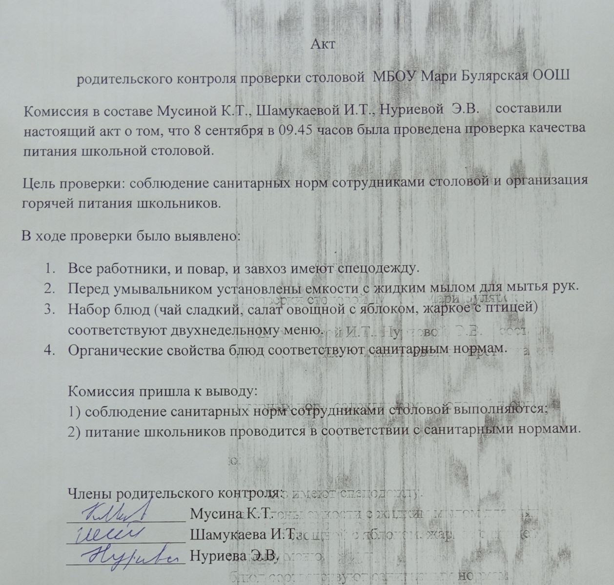 Положение о родительском контроле за организацией горячего питания