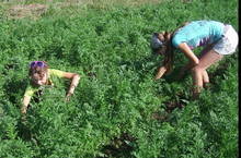 Лето в разгаре. Жара. Трудовая четверть однако продолжается. Две ученицы и педагог работают на пришкольном участке. Поливают цветы и овощи. Пропалывают огород.