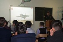 Сегодня прошла встреча с начальником отдела ВК РТ по Сармановскому и Муслюмовскому районам Гасановым Д.Г. Он провёл беседу с учащимися на тему: "Вооруженные силы РФ". А так же ребятам был представлен видеоматериал по данной тематике и показ презентации