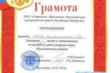 Команда юношей нашей школы заняла 1 место по спортивным соревнованиям по волейболу среди учащихся школ Муслюмовского района.(Учитель физической культуры Мазитов И.И.)Поздравляем!