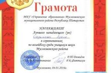 На спортивных соревнованиях по волейболу среди учащихся Муслюмовского муниципального района РТ лучшим нападающим был признан ученик 10 класса Садыков А.Р.