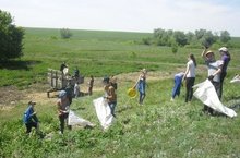 Учащиеся 5-7 классов вместе с классными руководителями ходили на уборку территории возле реки.