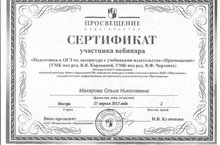 27 апреля учитель русского языка и литературы Макарова О.Н. приняла участие в вебинаре по теме "Подготовка к ОГЭ по литературе с учебниками издательства "Просвещение".