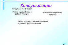 Для учащихся школы 9 и 11 классов проводятся консультации по выбранным ими предметам.