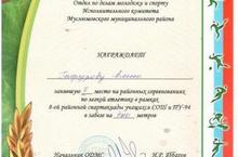 Отдел по делам молодежи и спорта Исполнительного комитета Муслюмовского муниципального района награждает ученика 11 класса Загитова Рината , занявшего 1 место на районных соревнованиях по легкой атлетике в рамках 8-ой районной спартакиады учащихся СОШ и ПУ-94 в толкании ядра.