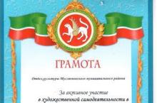 Отдел культуры Муслюмовского муниципального района награждает участников районного смотра конкурса грамотами за активное участие в художественной самодеятельности в рамках районного смотра конкурса под названием "Айлы кичле аулак өйләргә гармун моңы кергән сызылып..."Поздравляем!