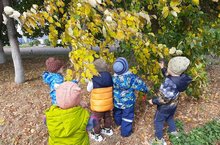 Воспитанники младшей дошкольной группы МБОУ Михайловская СОШ во время прогулки наблюдают за осенним деревом. В ходе наблюдения малыши формируют знания об основных частях дерева, их высоте и толщине, учатся любоваться красотой родной природы.