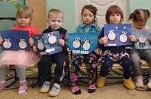 Дети очень любят создавать веселые картинки. Сегодня мы на голубой фон приклеили парных пингвинов. Слушали про них стишки, поиграли и побеседовали с ними.