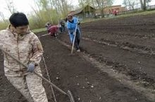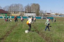Коллектив школы дружно сделали грядки и посадили свеклу
