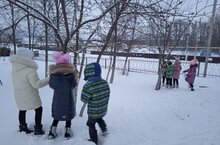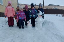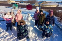 Саф һавага уйнарга чыккач, мәктәпкәчә яшьтәге төркем балалары кар бабай белән чыршы ясадылар. Ул, хәерле көн теләп, аларны көн саен каршы алып торачак.