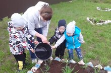 Экологик тәрбия бирү максатыннан, балалар белән бакчада чәчәкләр утырттык.