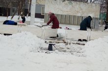 Мәктәп укучылары Бөек Ватан сугышында һәлак булган авылдашларыбыз хөрмәтенә куелган һәйкәл янын кардан арындырдылар.
