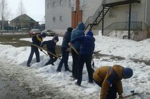 В этом году весна заставляет себя ждать особенно долго. Поэтому ученики и учителя гимназии вышли на уборку пришкольной территории и очистку ее от снега, чтобы помочь весне решиться.