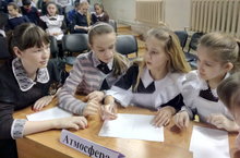 Сегодня в актовом зале гимназии прошел открытый урок экологии с участием представителей Министерства экологии и природных ресурсов РТ. Ученики, разделившись на команды, соревновались в знании особенностей биосферы, литосферы, гидросферы и атмосферы Земли. Команды рассказали об угрозах, вызванных вмешательством человека в естественный ход природы и выдвинули предложения, как этих угроз избежать.