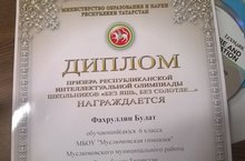 Ученики Муслюмовской гимназии Фахруллин Булат и Шайхиев Раиль (классные руководители Гуссамова Р.С. и Гумерова А.Р.) стали призерами Республиканской интеллектуальной олимпиады школьников "Без яшь, без сәләтле...". Поздравляем учащихся и их руководителей, желаем им дальнейших успехов во всем!
