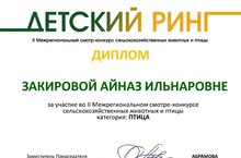 Ученица 10 класса Закирова Айназ приняла участие во II Межрегиональном смотре-конкурсе видеороликов о сельскохозяйственных птицах и животных. Работа Айназ была высоко оценена жюри и удостоена диплома. Научный руководитель - Бариева Лейсан Фагимовна