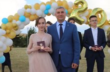 Укуда аеруча зур уңышларга ирешкән өчен медаль һәм урта гомуми белем бирү турында аерым үрнәктәге аттестат җаваплылыгы, төгәллеге белән аерылып торучы укучы, химия hэм биология фәннэреннән Бердәм дәүләт имтиханыннарын 100эр балл иясе Исмагилова Лиана Ленар кызына тапшырылды. Лиана күпсанлы олимпиадалар призеры hэм жинучесе, фән диңгезеннән энҗеләрне төпкә үк чумып алучы Лиананын бүгенге уңышлары – аның күпеллык, тырыш хезмәте нәтиҗәсе! Матур сыйфатларың алга таба да зур уңышларга ирешергә булышлык итсен сина, Лиана! Киләчәген табиб һөнәре белән бәйләргә теләгән Лианага унышлар насыйп булсын дигән теләкләрдә калабыз!