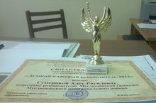 Учительница младших классов Муслюмовской гимназии Гумерова Алсу Рауиловна успешно выступила в зональном этапе Республиканского конкурса "Лучший классный руководитель - 2015", проходившем в городе Бугульма. Поздравляем Алсу Рауиловну и желаем ей дальнейших успехов в работе.