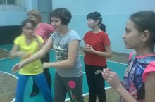В спортивном зале гимназии прошли "Веселые старты" с участием учеников 6б класса и их родителей. Участники соревнований разделились на две команды и состязались друг с другом в различных конкурсах, приготовленных учителем физической культуры Хантимеровым Р.Р. и классным руководителем Кадыровой Р.Г.