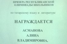 Ученица 11в класса Муслюмовской гимназии Асманова Алина стала призером республиканской олимпиады школьников по татарскому языку. Поздравляем Алину и ее учителя Тимергалиеву Эльмиру Василовну.