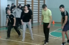 Сегодня в спортивном зале гимназии проходят соревнования по физической подготовке среди молодежи допризывного возраста. Парни и девушки соревнуются в беге, стрельбе, подтягивании, отжимании на брусьях.
