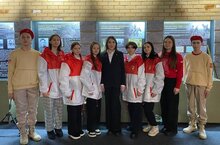 Научный сотрудник музея Тимкин Равиль Ильдарович организовал экскурсию по залу, а также провел для ребят патриотический урок, приуроченный двум памятным датам: 80- летию со дня полного освобождения Ленинграда от фашистской